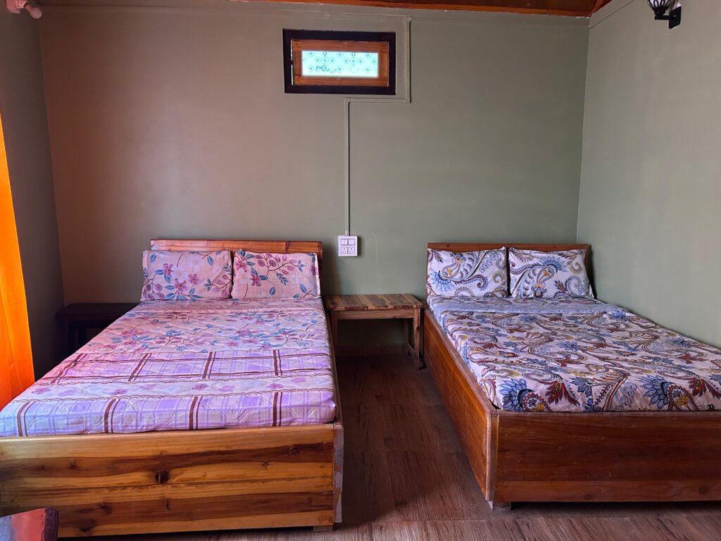 Spacious and comfortable, this room is designed with families in mind. The four beds are arranged to provide both privacy and togetherness. The attached washroom with hot water supply makes it convenient for kids and older guests. The soft lighting and local decor make this room feel like a home away from home.