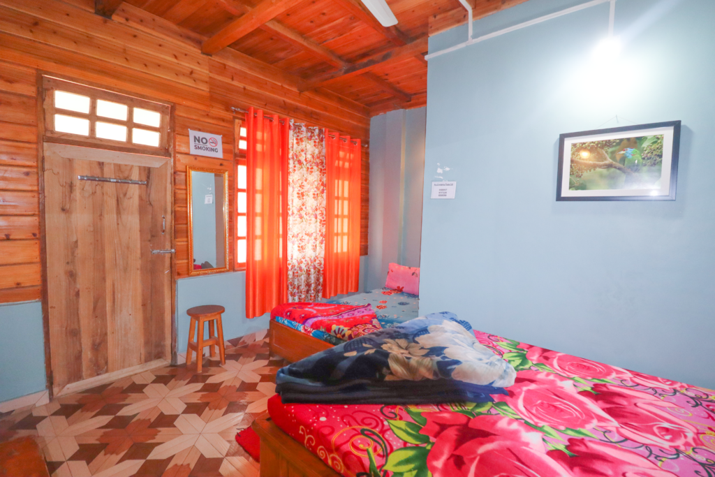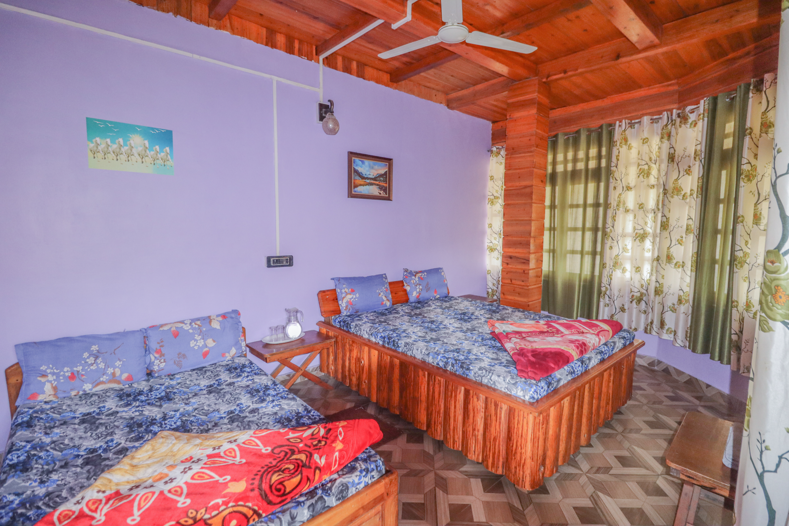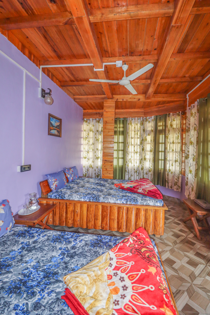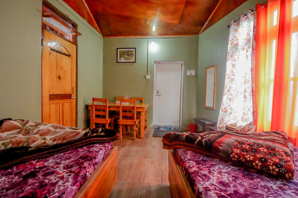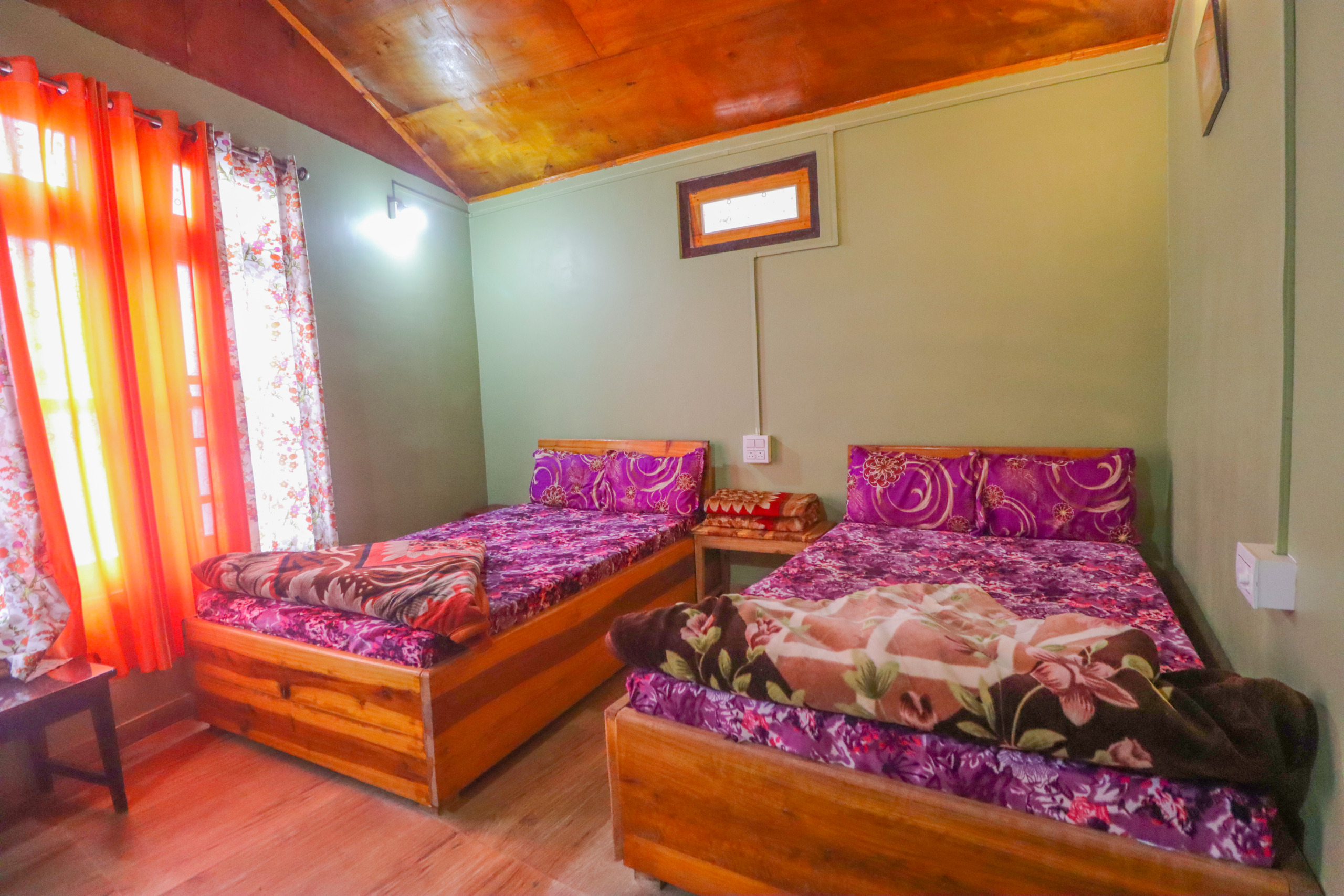 Located to catch the early morning light, this room is perfect for sunrise lovers. With the same four-bedded layout and modern attached bathroom with a geyser, this room offers both comfort and beauty. Ideal for early risers who want to start their day with a cup of tea and a view of the misty hills.